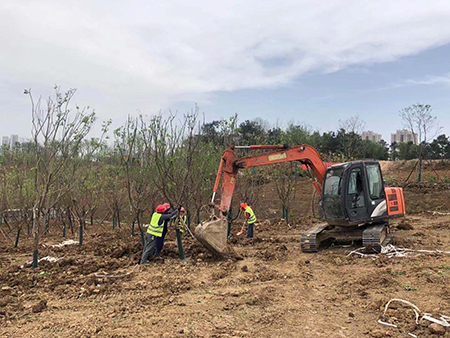 連日來(lái),市城控集團(tuán)直屬子公司荊門園林建設(shè)集團(tuán)集中力量在荊門園博園南區(qū)栽植喬木,為園區(qū)披上綠裝。據(jù)介紹,南區(qū)在盡量保留原有野生松林的前提下進(jìn)行園林設(shè)計(jì),增加了多種果樹、觀葉和觀花樹,以及許多外地品種樹木,以達(dá)到四季有花、移步換景的效果,目前喬木栽植完成近80%。圖為工人正在南區(qū)栽種黃櫨。(文、圖:劉琴琴 胡福健)