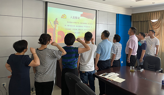 活動中,該公司全體黨員奏唱國歌,集體學(xué)習(xí)《黨章》,10名6月份入黨的黨員重溫入黨誓詞,并領(lǐng)取了精美的政治生日賀卡和經(jīng)典的勵志讀物。