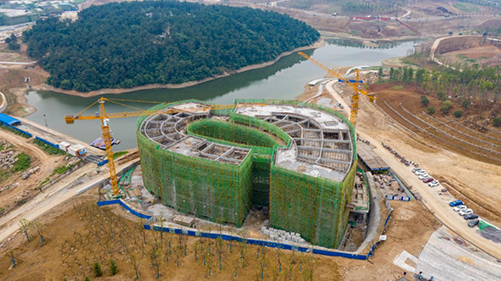 日前,市城控集團所屬子公司荊門漳河生態(tài)新城投資有限公司開發(fā)建設的荊門園博園主展館――自然博物館主體結構已封頂,展館布展深化大綱定稿工作也已完成。