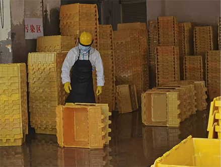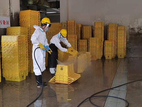 自2021年8月荊門發(fā)生疫情以來(lái),醫(yī)療廢物產(chǎn)生量明顯增加,京環(huán)公司人員設(shè)備均處于超負(fù)荷運(yùn)轉(zhuǎn)狀態(tài),醫(yī)療廢物處置能力受到嚴(yán)峻考驗(yàn)。8月9日,城控集團(tuán)向公司征集一名志愿者支援京環(huán)公司?!拔胰?,我有經(jīng)驗(yàn)”,王家林再次主動(dòng)請(qǐng)戰(zhàn)。經(jīng)過(guò)公司綜合評(píng)估后,確定了由王家林再次支援京環(huán)公司。8月10日,王家林收拾好換洗衣物,與家人簡(jiǎn)單告別后,踏上了開(kāi)往京環(huán)公司的車。到達(dá)京環(huán)公司后,經(jīng)過(guò)一線崗位操作流程和必備疫情防護(hù)技能培訓(xùn),根據(jù)京環(huán)公司統(tǒng)一調(diào)度安排,王家林迅速投入到了醫(yī)療廢棄物收集箱清洗的工作中。