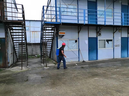 每天早晚對(duì)工人宿舍、食堂等重點(diǎn)區(qū)域進(jìn)行清潔消毒