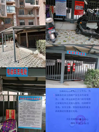 大漢龍城物業(yè)服務中心結合小區(qū)實際情況制定了詳細工作方案。一是進行全方位宣傳,工作人員在項目南門入口顯眼處及樓棟單元入口分別放置宣傳牌進行安全宣傳,同時通過業(yè)主群轉發(fā)電動車引起火災的相關文章及圖片,嚴禁飛線充電、超時充電,嚴禁在樓道、消防通道、地下室存放電動車,提醒廣大業(yè)主認識違規(guī)充電的危害性;二是對電動車進行全面摸底排查,對車主信息登記造冊,建立車輛信息臺賬,現(xiàn)已完成車輛信息登記21輛,剩余電動車信息正在逐一排查中;三是積極落實集中充電樁安裝工作,小區(qū)電動車集中充電樁已在十一前全部完成安裝并投入使用,目前小區(qū)所有電動車充電均在集中充電樁進行規(guī)范充電。
