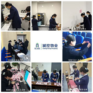 會議期間,物業(yè)公司負責人親臨現(xiàn)場指導,狠抓重點細節(jié),強調項目全體員工要傳承發(fā)揚“團結、敬業(yè)、創(chuàng)新、卓越”的企業(yè)精神,高質量、高要求、高標準地完成會場布置、后勤服務、會議保障等服務工作。客服部提前對杯具和開水壺進行清洗消毒,加班加點制作參會人員的座次名牌、證件胸牌和準備會議發(fā)放材料,以及禮儀迎賓和提供多樣化茶水服務等細微貼心服務;工程部對燈光、音響和會議字幕系統(tǒng)進行細致檢查和調試,確保會議設備運行正常;秩序部負責對會場周圍做好防控工作,維持會場秩序,確保會議安保服務零差錯;保潔部會前、會后對地面、座椅、衛(wèi)生間等各區(qū)域環(huán)境衛(wèi)生做了細化保潔,處處從細節(jié)入手、精益求精,為全體與會人員提供了細致、專業(yè)的高品質服務。