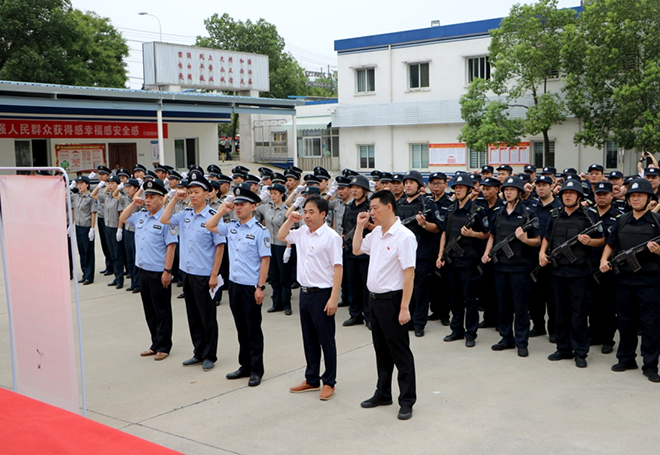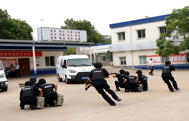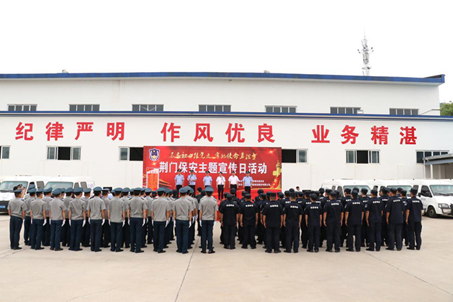 為充分展示公司良好的企業(yè)形象和保安押運(yùn)隊(duì)伍的專(zhuān)業(yè)素質(zhì),激發(fā)全體員工的工作熱情,動(dòng)員號(hào)召?gòu)V大保安企業(yè)和保安員積極投身服務(wù)新中國(guó)成立70周年大慶安保工作。8月7日上午,荊門(mén)保安主題宣傳日活動(dòng)在市金盾保安服務(wù)有限公司舉行。市公安局內(nèi)保支隊(duì)支隊(duì)長(zhǎng)許永鴻、副支隊(duì)長(zhǎng)許行松、高新?掇刀公安分局治安大隊(duì)大隊(duì)長(zhǎng)張大斌、東寶公安分局治安管理中心社區(qū)警務(wù)大隊(duì)大隊(duì)長(zhǎng)王永政,市金盾保安服務(wù)有限公司主要負(fù)責(zé)人全本峰、副總經(jīng)理蔣士龍出席活動(dòng),荊門(mén)區(qū)域內(nèi)15家保安企業(yè),市金盾公司所屬6家分公司和保安培訓(xùn)學(xué)校負(fù)責(zé)人及保安押運(yùn)員代表共計(jì)300余人參加此次活動(dòng)?;顒?dòng)由許行松主持,全本峰同志在活動(dòng)中致辭,張大斌同志領(lǐng)誓,許永鴻同志作總結(jié)指導(dǎo)講話(huà)。
