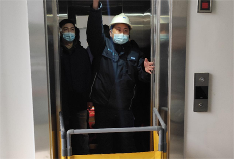 演練現(xiàn)場模擬了開關(guān)樓電梯在運(yùn)行過程中突然停電、乘客被困等場景。演練人員依托現(xiàn)代化通訊技術(shù)手段,在視頻監(jiān)控系統(tǒng)機(jī)房、電梯轎廂、電梯機(jī)房等地點(diǎn)開展實景演練,預(yù)設(shè)電梯從一樓向上運(yùn)行至二樓時突然停電,被困人員立即使用轎廂內(nèi)的緊急報警裝置向外求救,監(jiān)控室人員接到求救信息后,立即啟動電梯事故應(yīng)急處置方案。同時,工作人員第一時間與電梯維保單位取得聯(lián)系,并通知電梯安全管理人員趕到事故現(xiàn)場,通過電梯通訊系統(tǒng)與電梯內(nèi)被困人員進(jìn)行溝通,同步了解電梯內(nèi)相關(guān)情況、安撫被困人員,以消除恐慌。