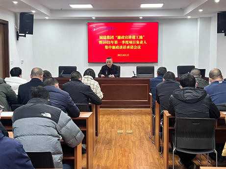 近日,市城控集團(tuán)直屬子公司城建集團(tuán)在雙喜大廈20樓會議室召開“廉政宣講進(jìn)工地”暨2022年第一季度項目負(fù)責(zé)人集中廉政談話承諾會議。
