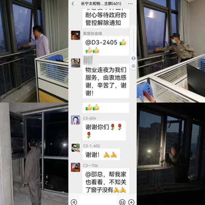 “尊敬的業(yè)主您好!面對突如其來的疫情,感謝各位業(yè)主的理解和配合!核酸篩查管控期間家里有困難、有需要幫助的孤寡老人或有需要照顧的孩子可以與樓棟管家或物業(yè)中心聯(lián)系。電話……”4月11日這天,這樣一條信息刷遍了長寧太和項(xiàng)目各個業(yè)主微信群,雖然內(nèi)容簡短卻句句暖人心。業(yè)主紛紛在群里豎起了大拇指,為服務(wù)中心一如既往的“真心、細(xì)心、關(guān)心、貼心、暖心”服務(wù)點(diǎn)贊!