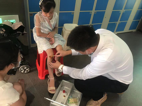 當(dāng)天下午3時(shí)6分,我們工作人員在園博園博物館外圍巡查時(shí),發(fā)現(xiàn)一個(gè)小女孩摔傷了。工作人員先把小女孩帶到休息室,隨后給孩子消毒擦拭傷口。