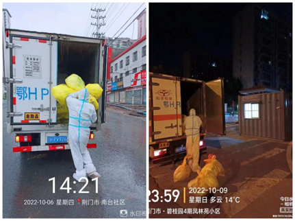 荊門中心城區(qū)封控后,公司所屬子公司京環(huán)公司黨支部第一時間召開會議部署醫(yī)廢收集處置工作,啟動應急預案,京環(huán)公司全員連夜返崗投入醫(yī)廢收集轉運工作。隨著疫情不斷發(fā)展,封控區(qū)域及留觀隔離點位不斷增多,城區(qū)核酸檢測點最高達500多個,為保障全市疫情防控工作有序開展,京環(huán)公司加強收集轉運力量,積極尋求環(huán)保部門、各社區(qū)街道幫助,暢通溝通互聯機制,利用線上工作群實時更新各點位醫(yī)廢情況,不斷提高醫(yī)廢收集轉運效率。10月5日至10月13日凌晨,京環(huán)公司收集處置醫(yī)廢及涉疫垃圾共計103噸,其中12日單日收集量18.3噸,為2020年疫情以來單日最高收集量。