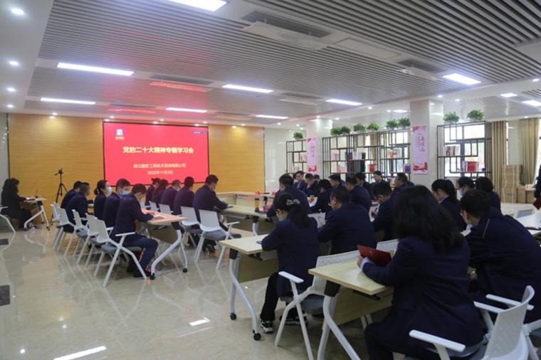 他要求,一要把握精神內(nèi)涵,在學習上加勁。要迅速做好新黨章、二十大學習用書的采購工作,靈活運用中心組學習、黨員主題活動日、三會一課等載體,領導班子專題學、黨員干部帶頭學、線上線下全員學,撰寫學習心得,開展交流討論,確保黨的二十大精神入腦入心、落地落實。二要做好結(jié)合文章,在宣傳上加力。要統(tǒng)籌運用公司官網(wǎng)、微信公眾號、視頻號等陣地開展二十大精神常態(tài)性宣貫,將其與黨建品牌錘煉、清廉國企創(chuàng)建等工作統(tǒng)籌部署、協(xié)同推進,融入日常、久久為功,以高質(zhì)量宣貫助推高質(zhì)量黨建,用高質(zhì)量黨建引領高質(zhì)量發(fā)展。三要緊扣發(fā)展目標,在貫徹上加壓。要堅持學以致用,活學活用,把握政策脈搏,緊盯行業(yè)風向,守正創(chuàng)新謀發(fā)展。要持之以恒強資質(zhì),無微不至優(yōu)服務,未雨綢繆謀轉(zhuǎn)型,堅定不移“走出去”,聚焦“雙碳”賽道、“大安全”領域、“全過程”咨詢,打好全年“收官”戰(zhàn),爭創(chuàng)工作新佳績,為企業(yè)高質(zhì)量發(fā)展再立新功。(文:羅風蓮;圖:張蕾)
