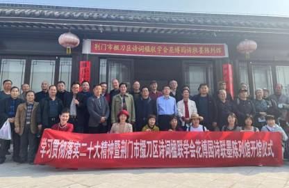 11月10日,荊門花博園隆重舉行掇刀區(qū)詩聯(lián)墨陳列館開館儀式,掇刀區(qū)政協(xié)、區(qū)民政局、市楹聯(lián)學會、市詩詞學會、市書法家協(xié)會及荊門本地文化學者40余人出席本次活動。