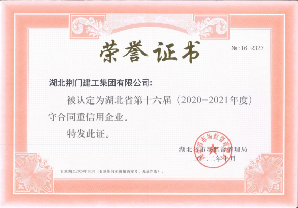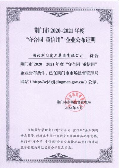 經(jīng)省市場監(jiān)督管理部門評選,建工集團(tuán)喜獲省第十六屆(2020-2021年度)“守合同 重信用”企業(yè)榮譽(yù)稱號,這是公司繼8月獲評市“守合同 重信用”企業(yè)后,再次獲得省級殊榮。近日,東寶區(qū)市場監(jiān)管部門將獲獎(jiǎng)證書送至公司并進(jìn)行了授牌。