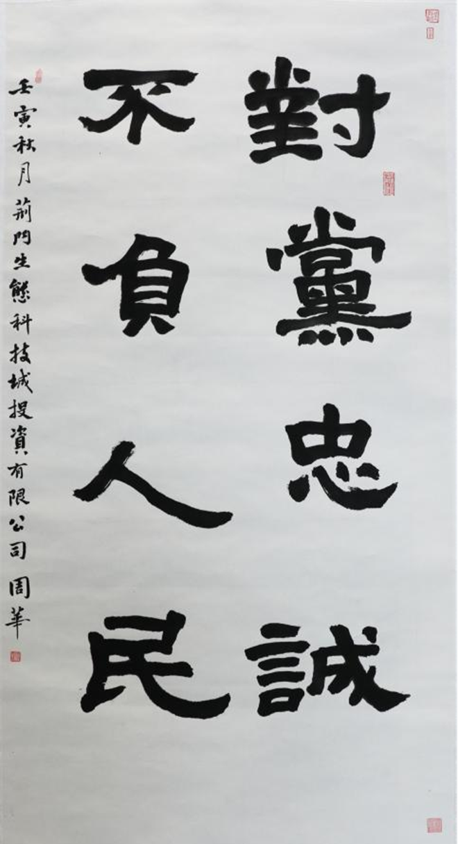 ――荊門城控集團(tuán)黨委書記、董事長杜佐鵬為本次活動書寫的書法作品“不