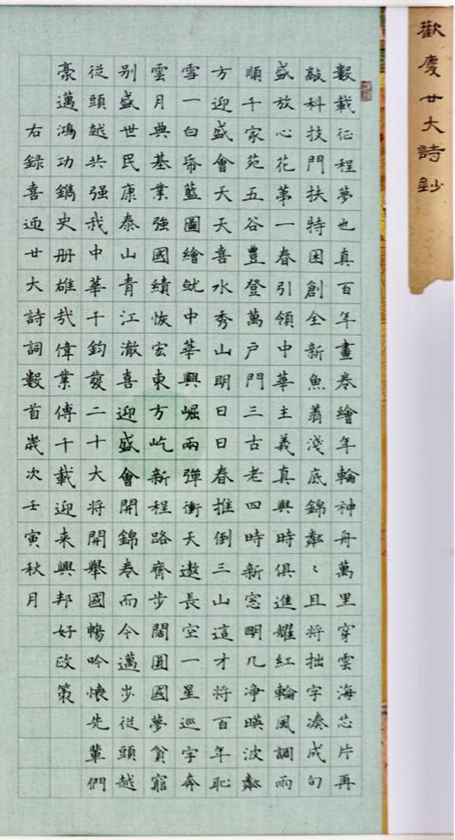 羅雅晗《喜迎二十大》詩抄 荊門園林建設(shè)集團(tuán)