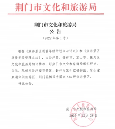 12月28日,經(jīng)市文化和旅游局評(píng)定公示,荊門花博園成功被評(píng)為2022年國(guó)家AAA級(jí)旅游景區(qū),成為荊門城控集團(tuán)唯一獲評(píng)國(guó)家級(jí)旅游景區(qū)單位。2020年開(kāi)園運(yùn)營(yíng)以來(lái),花博園對(duì)標(biāo)國(guó)家AAA級(jí)旅游景區(qū)要求,從加強(qiáng)軟、硬件建設(shè)兩方面著手,全力規(guī)劃打造我市中心城區(qū)最大的文旅產(chǎn)業(yè)項(xiàng)目綜合體。