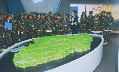 緊接著來(lái)到了一樓的荊門楚忘展廳,這里主要向?qū)W生們介紹了荊門的地形沙盤,并結(jié)合互動(dòng)投影更好的向同學(xué)們展示荊門的生態(tài)畫卷。展廳按照春、夏、秋、冬四季景色為空間語(yǔ)言,展示四季景觀的變化,讓同學(xué)們真正認(rèn)識(shí)自然、尊重自然、愛(ài)護(hù)自然。