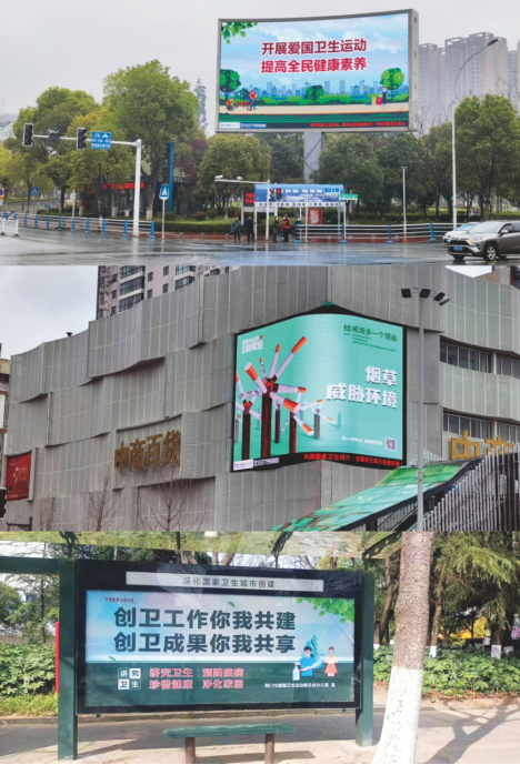 一是扎實鞏固創(chuàng)衛(wèi)迎檢成果。在所屬戶外廣告設(shè)施天鵝廣場西北角LED屏、生態(tài)運(yùn)動公園東南角LED屏、中商百貨樓面LED屏、荊門西高速入口T牌、漳河大道等4處地下通道平面廣告位上刊國家衛(wèi)生城市及禁煙公益廣告,構(gòu)建創(chuàng)衛(wèi)工作全方位、多層次、全覆蓋的宣傳態(tài)勢。二是打造干凈舒適公交乘車環(huán)境。組織專人開展全市公交站棚巡查,完成中心城區(qū)白云大道、政務(wù)中心周邊124處公交站棚的創(chuàng)衛(wèi)畫面更換及站棚清洗工作。三是大力開展路燈道旗整治工作。配合荊門市城區(qū)路燈管理分局開展道路燈桿防腐處理工作,組織人員對全市道路燈桿道旗920塊進(jìn)行拆除。
