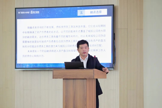 本期國(guó)資大講堂采用“我講我業(yè)務(wù)”形式,推選市城控集團(tuán)3名從事融資管理工作的業(yè)務(wù)骨干走上講臺(tái),分享所學(xué)所思所悟。三位同志聚焦當(dāng)前國(guó)內(nèi)金融政策形勢(shì)、政府投融資平臺(tái)轉(zhuǎn)型發(fā)展、融資工具運(yùn)用等,通過(guò)解構(gòu)城投、金融政策、融資工具三個(gè)專題,從不同角度詮釋對(duì)平臺(tái)公司融資工作的理解以及探討交流平臺(tái)公司轉(zhuǎn)型發(fā)展路徑,對(duì)如何解決市國(guó)資系統(tǒng)平臺(tái)公司存在的主營(yíng)業(yè)務(wù)盈利能力較弱、自身造血功能不足、潛在債務(wù)風(fēng)險(xiǎn)集聚等問(wèn)題提供了新思路。