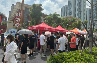 “辛苦了!這么熱的天,你們還專門來為我們服務,感謝你們!”守候在考場外的考生媽媽與中房公司工作人員握手道謝。