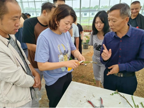 月季嫁接培訓(xùn)中,授課講師對切片、取芽、綁扎等操作步驟和養(yǎng)護流程進行深入淺出的講解,學(xué)員自告奮勇動手操作,有效增強了園藝專業(yè)技術(shù)知識,提升了實操工作能力。