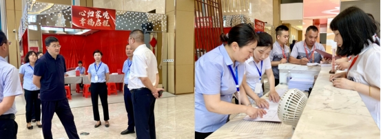 在交房預演現場,金盛物業(yè)公司成立“黨員收房隊”,開展了交房流程全要素演練。交付實操結束后,公司及時對各項問題進行匯集、研討、改進,優(yōu)化交房場地,增設業(yè)主休息等候區(qū),簡化現場開票流程,確保向所有業(yè)主遞交一份滿意的答卷。