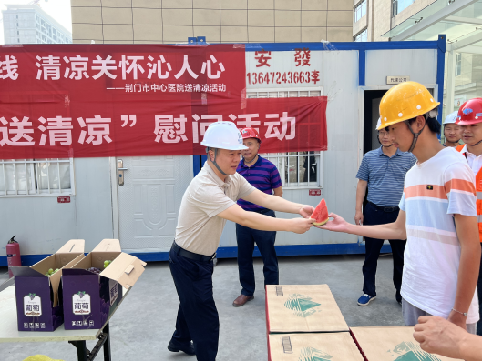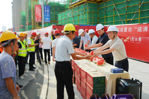 入伏時(shí)節(jié),高溫天氣給城市建設(shè)者帶來(lái)了炙熱“烤”驗(yàn)。近日,荊門城建集團(tuán)參加鑫建公司和秀江南公司聯(lián)合開展的“送清涼”活動(dòng),并走訪慰問(wèn)堅(jiān)守在一線的工作人員。