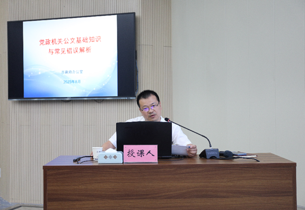 活動(dòng)分四個(gè)環(huán)節(jié)進(jìn)行。首先開(kāi)展公文寫(xiě)作培訓(xùn),市政府文秘科科長(zhǎng)宋孝華以《黨政機(jī)關(guān)公文基礎(chǔ)知識(shí)與常見(jiàn)錯(cuò)誤解析》為題,圍繞黨政機(jī)關(guān)公文特點(diǎn)、編排規(guī)則與常見(jiàn)錯(cuò)誤等進(jìn)行專題輔導(dǎo)。隨后,集中收看《暢通工程?“荊”天辦》欄目。接著,傳達(dá)學(xué)習(xí)省委書(shū)記王蒙徽和市委書(shū)記胡亞波近期講話精神。最后,開(kāi)展“天天三分鐘 精神記心中”黨員教育線上學(xué)習(xí)競(jìng)答,評(píng)選出本期“學(xué)習(xí)之星”。