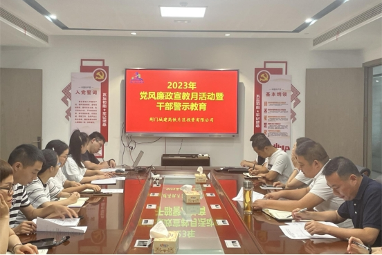 會(huì)議傳達(dá)了市城控集團(tuán)黨員干部警示教育大會(huì)會(huì)議精神,宣讀了《荊門城建高鐵片區(qū)投資有限公司2023年黨風(fēng)廉政建設(shè)宣傳教育月活動(dòng)清單》,并集體觀看了《鏡鑒家風(fēng)》警示教育片。