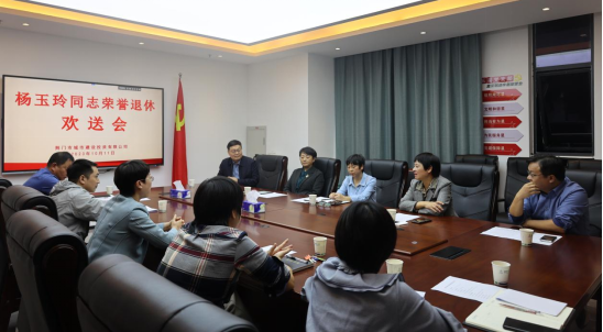 近日,荊門城投公司召開楊玉玲同志榮譽退休歡送會。荊門城控集團黨委委員、副總經理魯愛群到場祝賀,荊門城投公司領導班子及楊玉玲同志原分管單位主要負責同志參加。