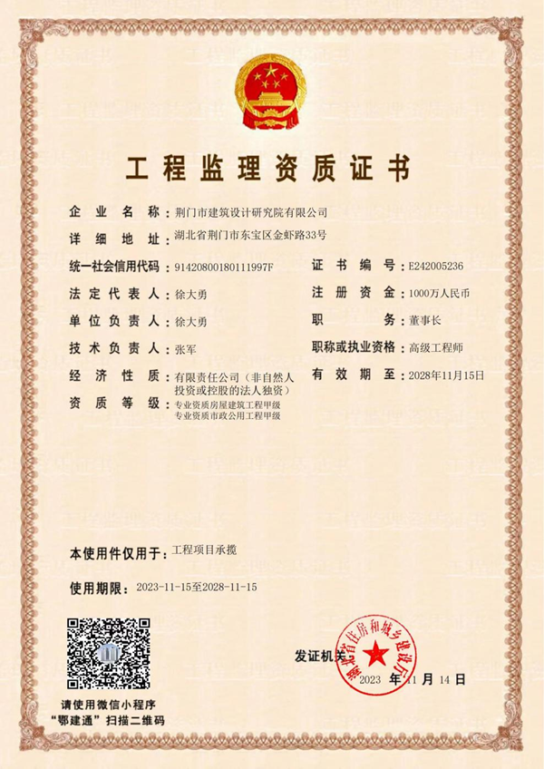 近年來,市建筑設(shè)計(jì)研究院有限公司全面實(shí)施“設(shè)計(jì)為主,行業(yè)延伸”發(fā)展戰(zhàn)略,充分發(fā)揮技術(shù)優(yōu)勢(shì),不斷增強(qiáng)技術(shù)力量,加快資質(zhì)增項(xiàng)升級(jí)步伐,推動(dòng)公司向建設(shè)工程總承包、全過程工程咨詢轉(zhuǎn)型升級(jí)高質(zhì)量發(fā)展。此次晉升工程監(jiān)理甲級(jí)資質(zhì),是公司拓市場(chǎng)、創(chuàng)品牌、補(bǔ)短板、強(qiáng)考核、嚴(yán)監(jiān)督工作的重大成果,為集團(tuán)高質(zhì)量發(fā)展進(jìn)一步助力。