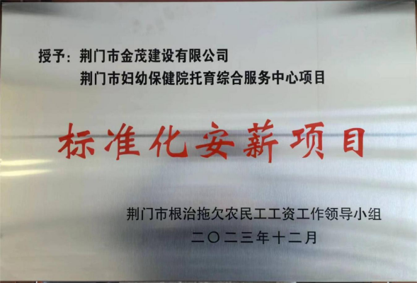 近日,從荊門市根治拖欠農(nóng)民工工資工作領(lǐng)導(dǎo)小組辦公室傳來喜訊,金茂公司承建的荊門市婦幼保健院托育綜合服務(wù)中心項(xiàng)目榮獲“標(biāo)準(zhǔn)化安薪項(xiàng)目”,這是繼中房?鑫鼎學(xué)府、中房?攬?jiān)滦浅巾?xiàng)目后,金茂公司再度蟬聯(lián)該項(xiàng)榮譽(yù)。