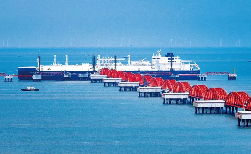 ▲中石油江蘇液化天然氣(LNG)接收站是國家重點工程,接卸來自世界各地的LNG船,其中70%為來自共建“一帶一路”國家的船只。圖為2023年8月13日,塞浦路斯籍“利特克”輪靠泊在中石油江蘇LNG接收站碼頭。 新華社發(fā) 許叢軍/攝