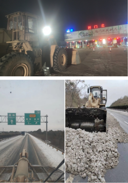雪情就是命令,責(zé)任就是使命。在接到支援調(diào)度任務(wù)后,城控礦業(yè)公司主要負(fù)責(zé)人第一時(shí)間作出部署,迅速啟動(dòng)應(yīng)急預(yù)案,調(diào)整停產(chǎn)休假時(shí)間,調(diào)配6名工作人員和4臺(tái)車輛設(shè)備(2臺(tái)鏟車、2輛保障車),從石橋驛鎮(zhèn)、子陵鋪鎮(zhèn)分兩路出發(fā),邊保通邊作業(yè),歷經(jīng)3個(gè)多小時(shí)、奔赴近40公里,于晚上9點(diǎn)在襄荊高速北路口指定地點(diǎn)與其他應(yīng)急支援隊(duì)伍會(huì)合。會(huì)合后,礦業(yè)馳援隊(duì)伍主動(dòng)認(rèn)領(lǐng)楊家橋至陳安近30公里路段,迅速進(jìn)入戰(zhàn)斗狀態(tài),發(fā)揚(yáng)國(guó)企連續(xù)作戰(zhàn)的鐵軍精神,采取“人停機(jī)不?!钡姆绞?,開(kāi)展24小時(shí)循環(huán)式、接力式鏟雪融冰作業(yè)。