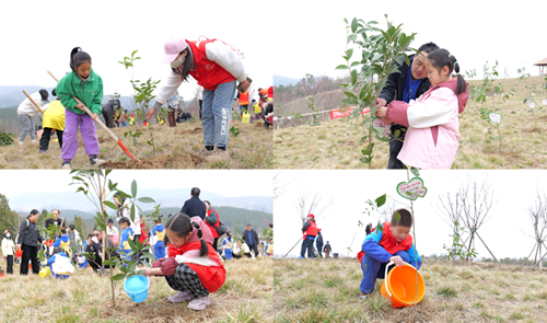 植樹現(xiàn)場,志愿者們熱情高漲、干勁十足,以實際行動帶動孩子共同揮鍬挖坑、扶樹填土、提水澆樹,相互協(xié)作,有條不紊,踐行綠色發(fā)展生態(tài)理念,助力生態(tài)宜居荊門建設(shè),共參與植樹150余棵。