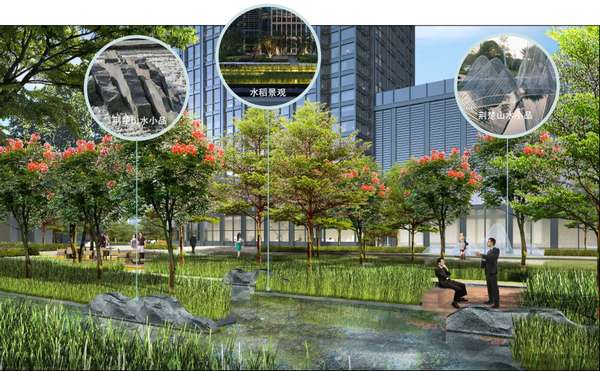 圖為雙喜總部經(jīng)濟園園林景觀概念方案