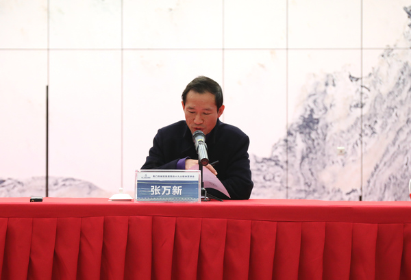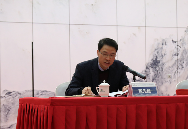 圖為市政府辦公室副主任張萬新宣讀市政府辦公室《關(guān)于市城控集團(tuán)功能定位及組織架構(gòu)的批復(fù)》