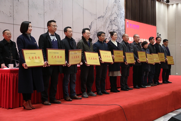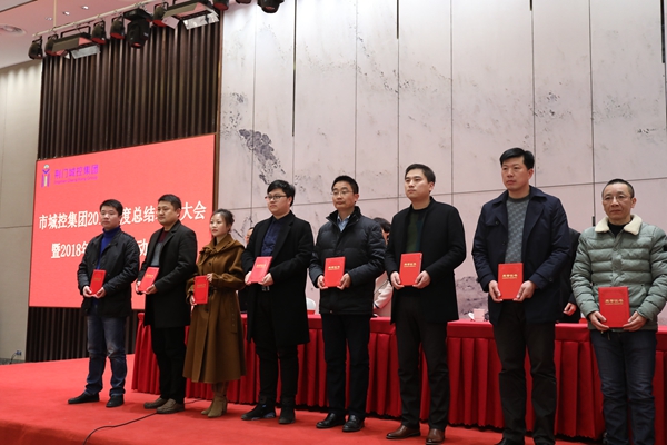 圖為城控集團(tuán)2017年度先進(jìn)集體代表上臺(tái)領(lǐng)獎(jiǎng)