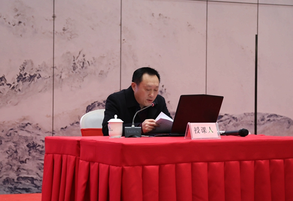 圖為城控集團(tuán)黨委委員、副總經(jīng)理江泉作資產(chǎn)經(jīng)營(yíng)的理論與實(shí)踐專題講課
