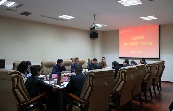 圖為市紀委、監(jiān)委調(diào)研黨風廉政工作座談會現(xiàn)場