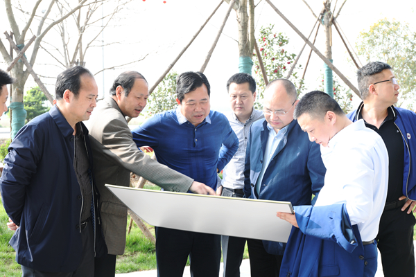 圖為安徽未名經(jīng)濟(jì)集團(tuán)總裁曹文波聽取生態(tài)科技城的產(chǎn)業(yè)規(guī)劃