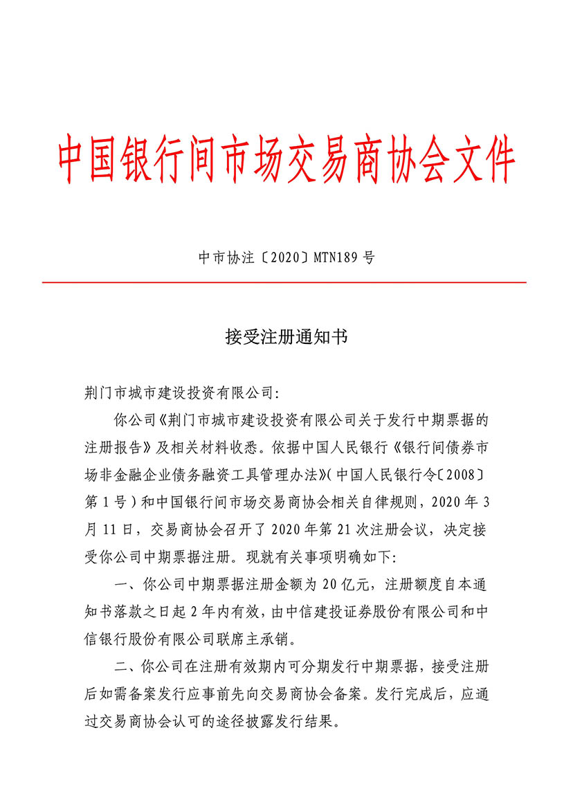 ――市城投公司20億元中期票據(jù)獲中國(guó)銀行間交易商協(xié)會(huì)注冊(cè)準(zhǔn)予發(fā)行