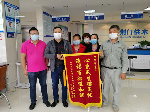 5月15日,金豐公司總經(jīng)理袁家群和東寶區(qū)工商聯(lián)相關(guān)負(fù)責(zé)人來(lái)到市供水總公司,送上感謝信和寫(xiě)有“情系福利事業(yè) 助推金豐騰飛”字樣的鮮艷錦旗。