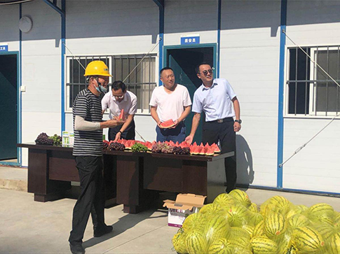 慰問(wèn)小組為頂酷暑、戰(zhàn)高溫的一線員工送來(lái)礦泉水、西瓜、葡萄、藿香正氣液、仁丹等防暑降溫物資,讓大家感受到了夏日里的一抹清涼。同時(shí)傳達(dá)了親切關(guān)懷和慰問(wèn),叮囑大家既要注意防暑降溫,合理安排施工,保障身心健康,又要繃緊安全之弦,做實(shí)安全之功,確保安全生產(chǎn)。