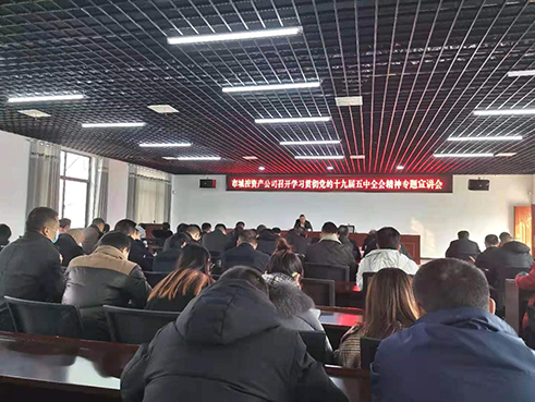 為全面深入學(xué)習(xí)領(lǐng)會(huì)黨的十九屆五中全會(huì)精神,引導(dǎo)廣大黨員干部群眾把思想和行動(dòng)統(tǒng)一到全會(huì)精神上來(lái),把智慧和力量凝聚到落實(shí)全會(huì)確定的各項(xiàng)目標(biāo)任務(wù)上來(lái),推動(dòng)興起學(xué)習(xí)宣傳貫徹全會(huì)精神的熱潮,市城控集團(tuán)所屬市城控資產(chǎn)公司于12月23日在市金盾保安培訓(xùn)學(xué)校多功能電教室組織學(xué)習(xí)貫徹黨的十九屆五中全會(huì)精神專題宣講會(huì)。市城控資產(chǎn)公司及所屬企業(yè)中層及以上干部,公司機(jī)關(guān)工作人員等60余人參加。