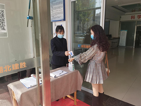 建勝公司工作人員對(duì)檢查人員進(jìn)行測(cè)溫登記