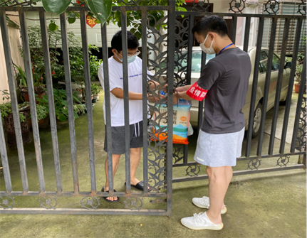 到社區(qū)報(bào)到后,社區(qū)網(wǎng)格員簡單交代任務(wù)和有關(guān)要求后,我們就正式上崗了,從家到鳳袁小區(qū)一共有3公里的路程,由于交通管制,我們每天步行往返,大家苦中作樂,紛紛表示就當(dāng)成日常鍛煉。在卡口,嚴(yán)格管控出入車輛,為來訪人員檢測體溫,由于小區(qū)孤寡老人比較多每天給老人們送菜和生活用品。每天在烈日酷暑下我們一遍又一遍地巡查小區(qū)和周邊街道,汗水在身上濕了又干,干了又濕。每當(dāng)家人看到我們疲憊的身影并問我們“累嗎,在家休息兩天吧”,我們都很自豪的告訴家人“我們累會(huì)兒可以,保障小區(qū)居民們的安全在辛苦也是值得的!”