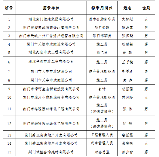 1.湖北先創(chuàng)市政工程有限公司造價師、荊門市皓程園林綠化工程有限公司預算員2個崗位空缺。