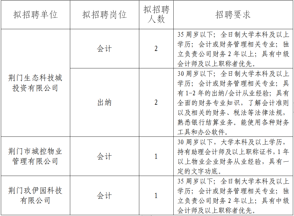 根據(jù)工作需要,市城控集團面向系統(tǒng)內(nèi)公開招聘6名財務(wù)人員。現(xiàn)將有關(guān)事項公告如下: