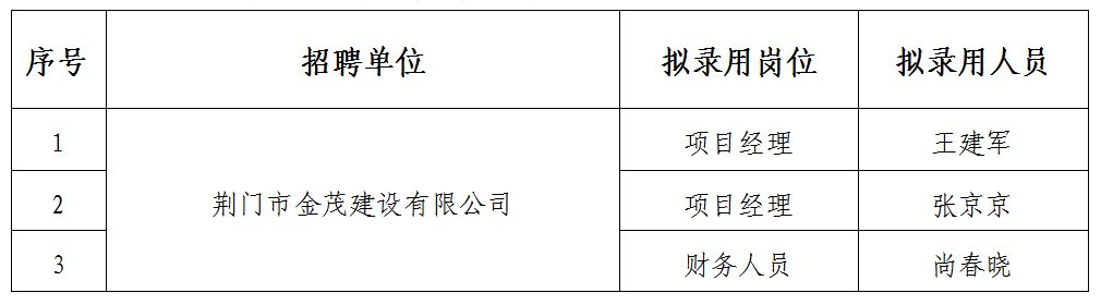 1.荊門(mén)市金茂建設(shè)有限公司成本管理崗位空缺。