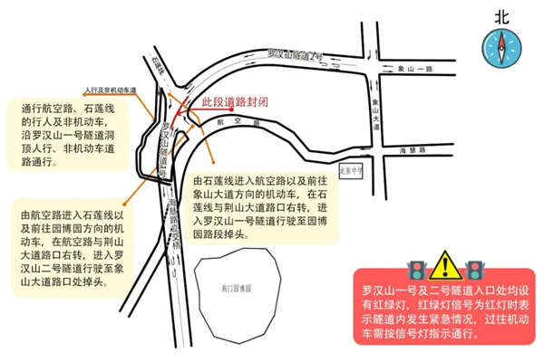 需要注意的是,荊山大道(羅漢山隧道段)全線限速50公里/小時(shí)。交警提醒:為了您和他人的安全,請遵守交通法規(guī),切勿超速行駛。